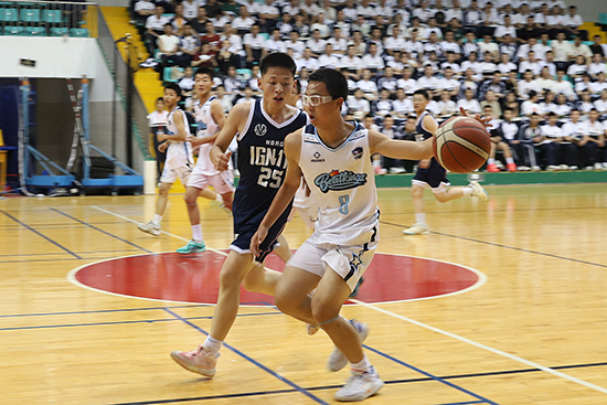 第二場(chǎng)是由各個(gè)隊(duì)伍的優(yōu)秀選手和教師隊(duì)進(jìn)行籃球友誼賽。學(xué)生們對(duì)這種形式的比賽充滿著興趣,踴躍參與。面對(duì)教師隊(duì),學(xué)生們躍躍欲試,第一球就是由學(xué)生隊(duì)打入。學(xué)生們盡情展示他們的技術(shù),打得酣暢淋漓,教師隊(duì)也奮勇拼搏,鐘濤老師的連續(xù)3分球,精彩異常,引發(fā)陣陣歡呼。最終,教師隊(duì)贏得了比賽。