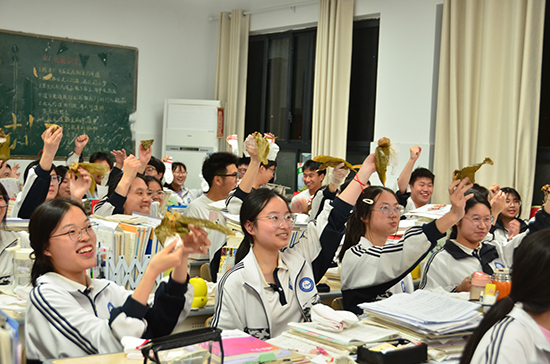 活動伊始,學(xué)校領(lǐng)導(dǎo)帶著滿滿的祝福和期待,走進了每一個高三班級。他們親手將發(fā)糕、粽子送到每一位學(xué)子手中。糕粽寓意著“高中狀元”,寄托著學(xué)校對學(xué)子們金榜題名的美好祝愿。除了美食,學(xué)校還為每位高三學(xué)子準備了兩雙特別的襪子,這些襪子上印有“金榜題名”“逢考必過”等字樣,寓意著學(xué)校對同學(xué)們的祝福和期望。學(xué)子們品嘗著美味的糕粽,臉上洋溢著幸福的笑容。