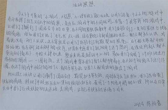活動結束后,同學們紛紛表示,這次活動不僅是一次身體上的鍛煉,更是一次心靈上的洗禮。他們深刻地感受到,只有在相互信任、彼此支持的氛圍中,才能發揮出最大的潛力,共同克服困難,取得成功。