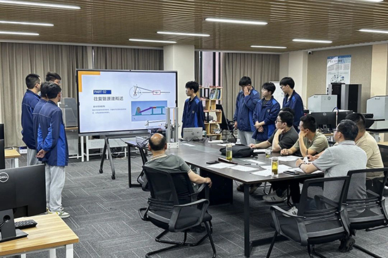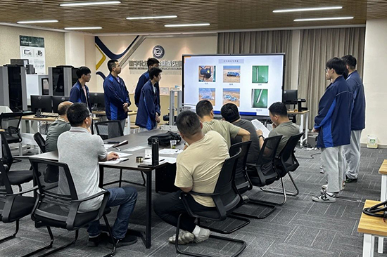 答辯現(xiàn)場,機(jī)電205班的學(xué)生紛紛展示了自己的畢業(yè)設(shè)計(jì)成果。從題目選定、圖紙繪制到完成三位零件圖和裝配圖,學(xué)生們通過鉗工加工、車床加工、銑床加工、鉆床加工、3D打印制作完成零件的加工,并通過所學(xué)的裝配鉗工技術(shù)在規(guī)定時(shí)間內(nèi)完成了畢業(yè)設(shè)計(jì)的研修任務(wù)。每一個(gè)環(huán)節(jié)都凝聚了學(xué)生們對(duì)所學(xué)技術(shù)的提煉與心血。在展示現(xiàn)場,學(xué)生各自介紹設(shè)計(jì)思路與制作過程,展現(xiàn)了扎實(shí)的專業(yè)知識(shí)與實(shí)踐能力,緊張激烈的氣氛中也縈繞著幾分自豪。隨后,評(píng)委老師們針對(duì)畢業(yè)設(shè)計(jì)匯報(bào)和作品提出相關(guān)問題,同學(xué)們現(xiàn)場回答。評(píng)委老師們認(rèn)真嚴(yán)謹(jǐn)?shù)乜疾炝送瑢W(xué)們對(duì)專業(yè)知識(shí)的掌握程度,對(duì)同學(xué)們的項(xiàng)目成果予以肯定,從作品的工藝、功能、應(yīng)用等方面進(jìn)行了評(píng)述,指出了其中的亮點(diǎn),同時(shí)也提出了寶貴的改進(jìn)意見,給予了同學(xué)們寶貴的技術(shù)指導(dǎo)與建議,幫助他們在專業(yè)領(lǐng)域更進(jìn)一步。