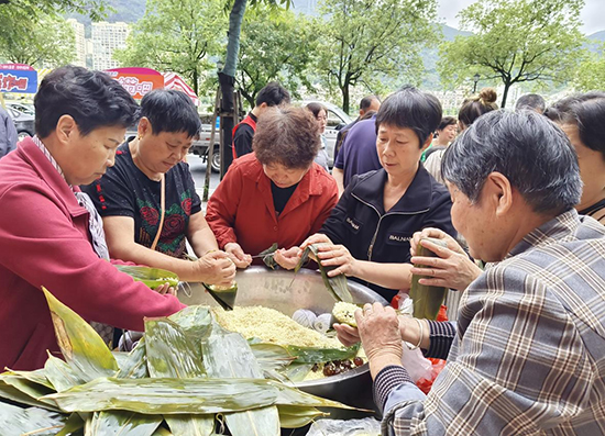 一粽一尋念,一葉一始端。習(xí)俗傳千載,文化綻斑斕。6月7日下午,學(xué)校與東門(mén)社區(qū)共同舉辦“粽葉飄香迎端午,幸福和諧鄰里情”包粽子活動(dòng)。活動(dòng)現(xiàn)場(chǎng),有說(shuō)有笑,熱鬧非凡,黨員、老年學(xué)員、志愿者圍坐在一起,一邊包粽子,一邊互相分享著包粽子的經(jīng)驗(yàn),講述著端午節(jié)的由來(lái)。有的熟練地將粽葉折成漏斗狀,有的小心翼翼地添加糯米和餡料,有的則認(rèn)真地用繩子捆綁。隨著粽子的數(shù)量不斷增多,現(xiàn)場(chǎng)的歡樂(lè)氛圍也如同端午的粽子一樣被細(xì)繩緊緊纏繞,相互交融,散發(fā)著令人陶醉的濃郁芳香。