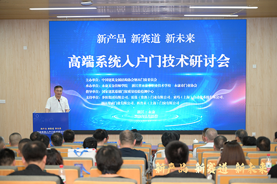 5月25日下午,第14屆中國(永康)國際門業博覽會召開前夕,由中國建筑金屬結構協會鋼木門窗專委會主辦,永康五金技師學院、浙江省永康市職業技術學校、永康市門業協會承辦,國家建筑幕墻門窗質量檢驗檢測中心指導的“高端系統入戶門技術研討大會”在永康五金技師學院隆重召開!