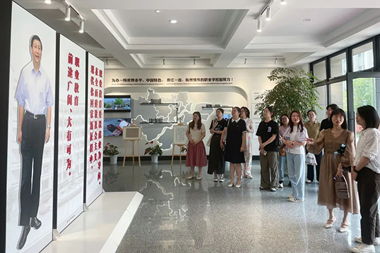 隨后,陳曉帶領(lǐng)一行人參觀校史文化長廊,在歷史沿革、教育理念、校園文化、學生培養(yǎng)的介紹和展示過程中,深刻感受到杭州市中策職業(yè)學校輝煌的發(fā)展史。