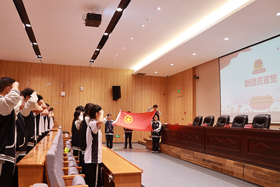 郭海英、蔡其標(biāo)、汪光岳、金松、王金偉、李若鋌為新團(tuán)員代表佩戴團(tuán)徽、頒發(fā)團(tuán)員證,標(biāo)志著他們正式成為共青團(tuán)員。