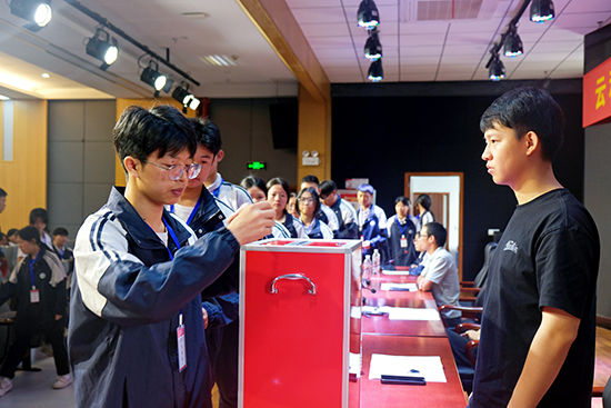 學(xué)生代表在監(jiān)票人的監(jiān)督下,有序進(jìn)行投票。投票結(jié)束后,總監(jiān)票人林偉琴報(bào)告計(jì)票結(jié)果,宣布選舉結(jié)果。