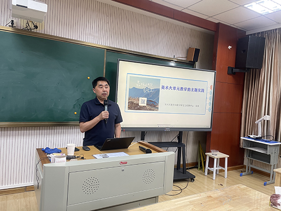 湖州市吳興區教育局教學研究與培訓中心副主任陳勇就中小學美術課要教什么、當下單元教學的梳理、美術大單元的教學實踐、美術大單元教學的思考四方面展開專題講座,分享了大單元教學的實踐案例,強調單元教學不僅是組織形式,更是一種促進學生深度學習的思維方式。