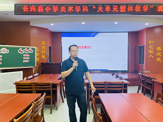 長興縣第一小學王有福老師圍繞“為何大單元、何為大單元、大單元何為”三個主題,結合教材,通過生動的舉例闡述了對大單元的理解與思考。