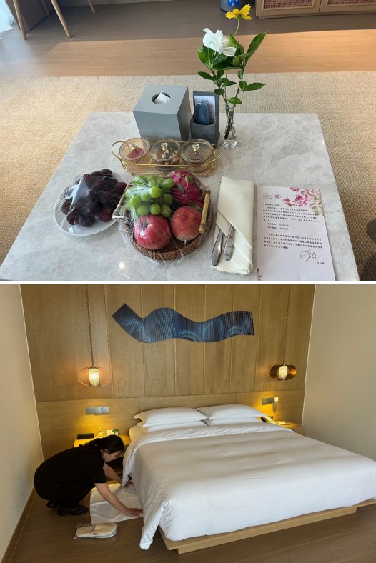 在面對VIP接待中的復雜挑戰時,教師團隊與客房部負責人緊密合作,對服務流程進行了細致地剖析。他們根據不同團隊VIP的獨特需求,創新性地設計了個性化的接待服務流程。這一流程涵蓋了房間布置的細節、菜單的精心搭配、以及紀念品的周到安排等各個方面,旨在通過每一個環節展現接待過程的“尊重、舒適、定制”,彰顯服務的匠心獨運。酒店副總經理董淑表示:教師們為酒店的VIP服務注入了新的活力和特色,她們的專業知識和教學經驗為酒店VIP服務流程的優化提供了寶貴意見,增強了酒店服務團隊的專業素養和應變能力,創新了客戶體驗的多元化方案。
