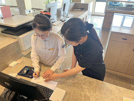 以“客戶需求”為導向,將“VIP定制化服務設計與接待”作為連接理論與實踐的橋梁,通過跨部門輪崗的方式,使教師們在酒店運營的各個方面積累了經驗、提升了技能。這不僅豐富了教師們對酒店運營的理解和掌握,還激發了她們在不同崗位上創新服務特色的熱情,推動了產學研的深度融合。實踐團隊成員象山縣旅游名教師陳丹表示:“真實的VIP服務項目使我們深刻理解了客戶需求的多樣性和個性化服務的重要性。通過跨部門輪崗,我們積累了豐富的實戰經驗,提升了服務技能,更新了服務理念。實踐結束后,我們會加強這方面的教育教學研究,將實踐中的洞見和經驗融入課程,以培養出更多能夠適應市場變化、滿足客戶個性化需求的高素質旅游服務人才。”