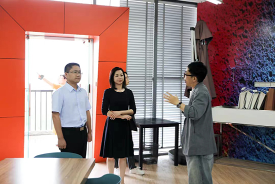 楊斌一行先后參觀了美育展示廳、服裝智能仿真結構工作室、“色彩運用+趨勢”工作坊、“童裝品牌+設計”工作坊、品牌營銷+陳列工作坊、黨建長廊、藝承工作室、學生事務中心、一爾皮具工作室、匠心坊、箱創、服裝EPC實訓室、旅游實訓室展廳及名師長廊等場所,并深入了解學校在師資隊伍建設、特色學校發展情況、學校教育教學質量等多方面的情況。