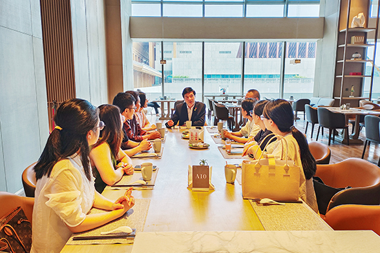 “作為酒店人你要懂得時(shí)而矜持,時(shí)而瘋狂,寵辱不驚,對(duì)酒店業(yè)保有持續(xù)的熱愛(ài)。”南苑奢華度假型酒店Jun酒店任總經(jīng)理分享職業(yè)心得時(shí)的話語(yǔ)深深打動(dòng)感染了實(shí)踐團(tuán)隊(duì)的九位教師。每到一處,酒店的管理人都會(huì)坐下來(lái)與實(shí)踐團(tuán)隊(duì)的教師們面對(duì)面分享自己的職業(yè)心得,這一場(chǎng)場(chǎng)和酒店大咖們的“親密接觸”不僅讓實(shí)踐團(tuán)隊(duì)的教師們從里到外地深入了解了酒店,也讓他們從內(nèi)而外地重塑職業(yè)心態(tài)。