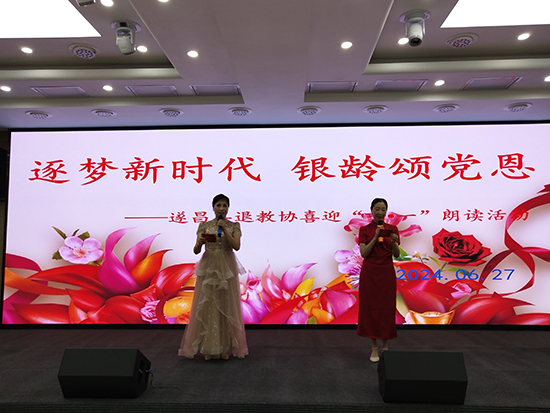 “七一”前夕,遂昌縣教師發展中心5樓多功能教室里一片歡聲笑語,縣退教協以“逐夢新時代 銀齡頌黨恩”為主題的喜迎中國共產黨建黨103周年朗誦活動在此舉行。
