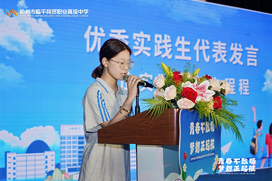 崗位實(shí)踐2班寧程程作為優(yōu)秀實(shí)踐生代表發(fā)言,寧程程同學(xué)分享了自己崗位實(shí)踐的心得體會(huì),通過(guò)崗位實(shí)踐她深刻體會(huì)到了理論實(shí)踐相結(jié)合的重要性,以及持續(xù)學(xué)習(xí)、團(tuán)隊(duì)協(xié)作、責(zé)任心的必要性。她代表實(shí)踐生們表達(dá)對(duì)學(xué)校精心搭建崗位實(shí)踐平臺(tái)、為他們創(chuàng)造走出校園學(xué)習(xí)機(jī)會(huì)表達(dá)感謝,同時(shí)感謝班主任一次次的走訪、悉心指導(dǎo)和關(guān)懷。