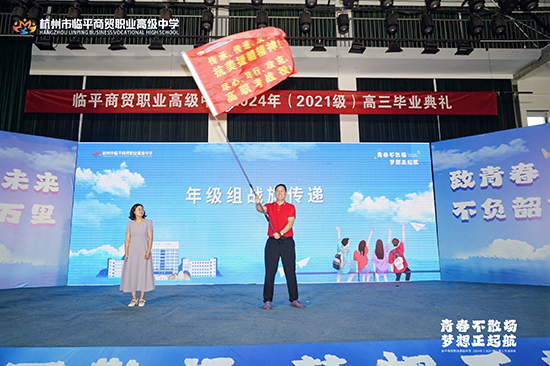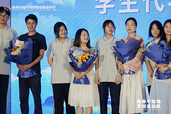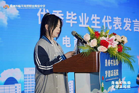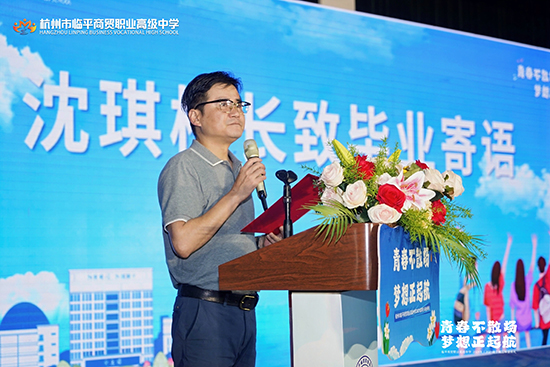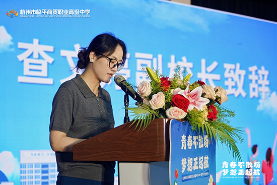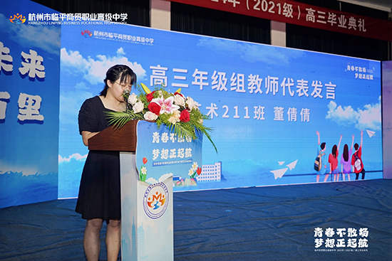 教學(xué)副校長(zhǎng)查文婷致辭,她首先向2021級(jí)學(xué)子表達(dá)祝賀,祝賀2021級(jí)學(xué)子順利畢業(yè),祝賀他們?nèi)〉玫呢S碩成果:591人圓夢(mèng)大學(xué),上線100%;本科人數(shù)繼續(xù)保持兩位數(shù)高位發(fā)展,所有專業(yè)大類(lèi)均有本科上線;電商專業(yè)本科人數(shù)連續(xù)三年位列杭州市第一,藝術(shù)設(shè)計(jì)類(lèi)專業(yè)本科人數(shù)位列全省第十名。隨后感謝辛勤耕耘、一路奉獻(xiàn)的全體高三班主任、任課教師及所有教職員工,感謝執(zhí)著夢(mèng)想與無(wú)悔拼搏的全體高三學(xué)子,感謝他們?cè)谇啻籂N爛的年華,與學(xué)校一起攜手同行!最后,查文婷副校長(zhǎng)為全體畢業(yè)生生送上真摯的祝福,同時(shí)宣布典禮正式開(kāi)始。