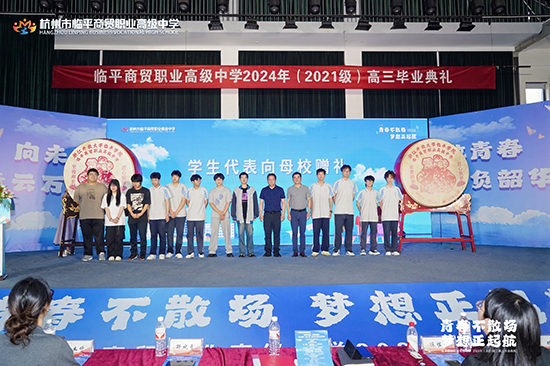 校園中的一草一木,一花一鳥(niǎo),伴我們擺脫稚氣,走向沉穩(wěn),收獲知識(shí),是學(xué)校為我們提供了學(xué)習(xí)的機(jī)會(huì)和平臺(tái)。離別之際,2021級(jí)學(xué)子王治仁、徐昱庭、朱笑天等370名同學(xué)捐資購(gòu)買(mǎi)了一對(duì)大鼓,作為畢業(yè)禮物送給學(xué)校,祝福學(xué)校“鼓樂(lè)和鳴,越來(lái)越好”!沈琪校長(zhǎng)、邵曉舟書(shū)記代表接收禮物并敲響第一聲鼓樂(lè)。