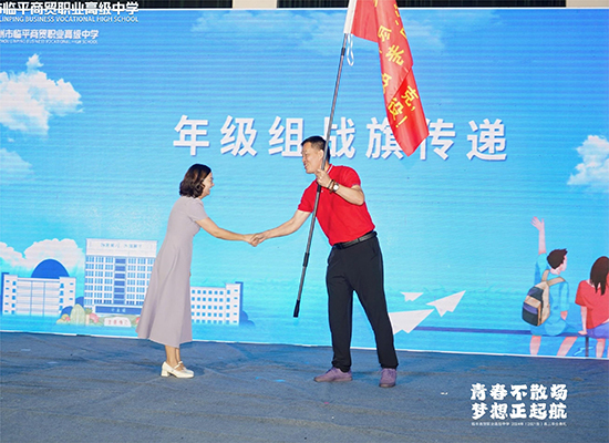甲光向日金鱗開(kāi),戰(zhàn)旗烈烈燃斗志!文化、力量、精神需要傳遞、傳承,高三年級(jí)主任王海珍老師把印有“傳承、傳遞,發(fā)揚(yáng)抗美援朝精神;盡心、盡行,攻克高職考戰(zhàn)役”的紅色戰(zhàn)旗轉(zhuǎn)交到高二年級(jí)主任戴國(guó)華老師手中,祝愿2022級(jí)學(xué)子在2025年的高考中收獲佳績(jī),創(chuàng)造輝煌!2021級(jí)學(xué)子在搖旗吶喊中為2022級(jí)學(xué)弟學(xué)妹們送上最真摯的祝福。