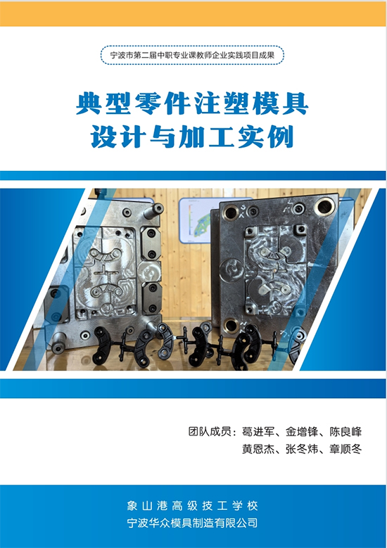 模具設(shè)計與制造項目組6位教師在寧波華眾模具制造有限公司頂崗實踐期間,發(fā)現(xiàn)行業(yè)企業(yè)的發(fā)展明顯超前于學(xué)校教育,且有相對應(yīng)的企業(yè)設(shè)計標(biāo)準(zhǔn),涉及好些技術(shù)習(xí)慣和工藝流程,為了讓該專業(yè)的教學(xué)跟上行業(yè)企業(yè)的“趟兒”,老師們萌生了開發(fā)“工作手冊式教材”的念頭,成果轉(zhuǎn)化階段,在企業(yè)師傅的幫助下,《典型零件注塑模具設(shè)計與加工實例》成功出爐。