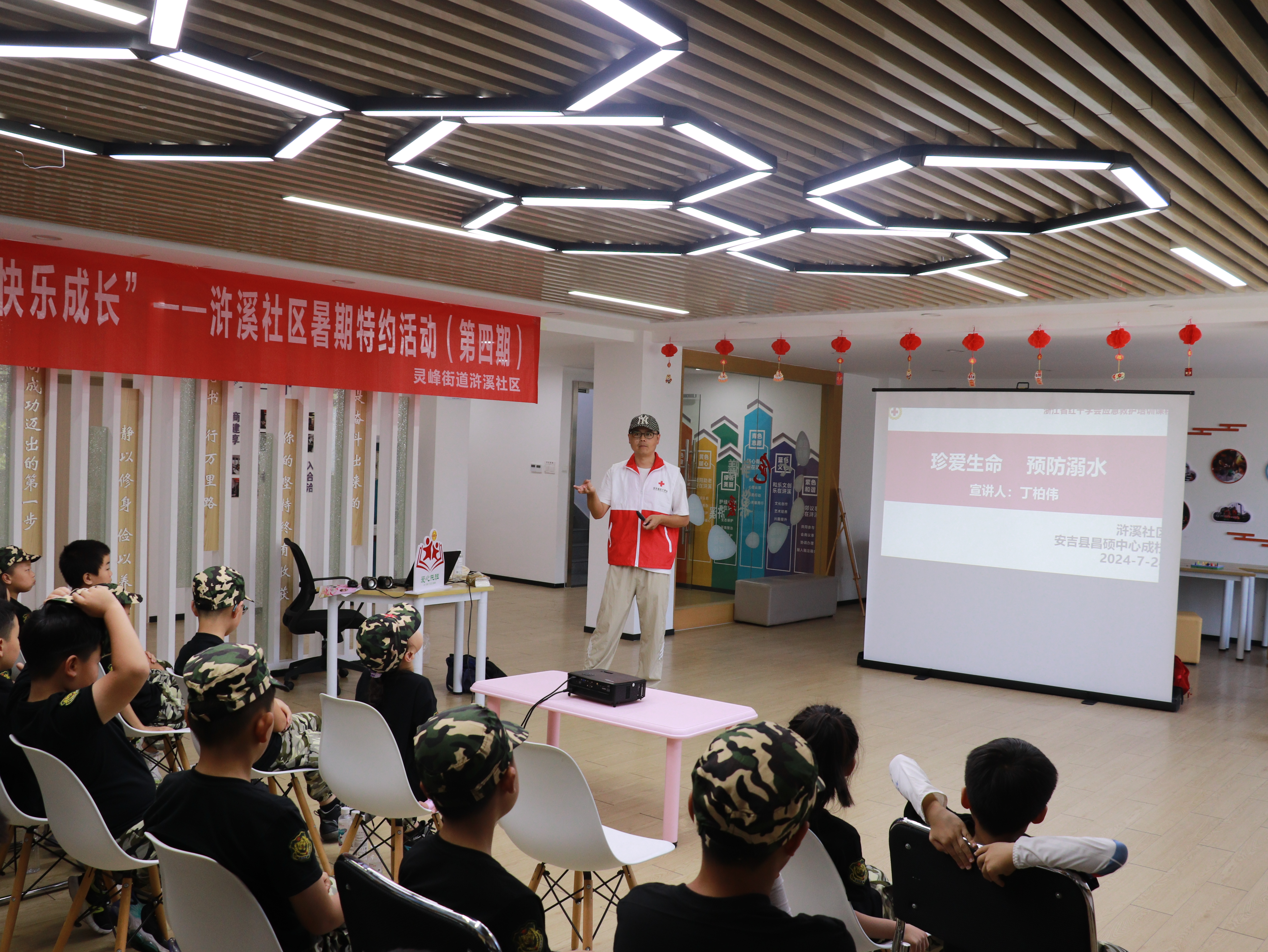 夏季是溺水事故的高發期,為提高孩子們的安全意識,學會預防溺水和自救互救技能,浙江省紅十字會一級應急救護師資丁柏偉為孩子們傳授防溺水知識。