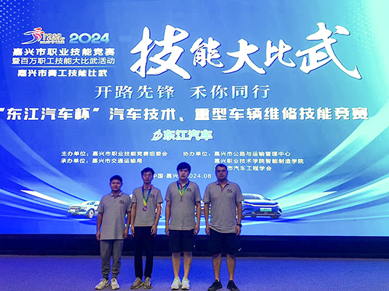 經過專業理論和專業技能兩個競賽內容的綜合比拼,最終,張悅獲得汽車技術賽項二等獎(第二名),呂宇倫獲得重型車輛維修技能賽項三等獎。同時,榮獲嘉興市職業技能競賽暨百萬職工技能比武活動“東江汽車杯”汽車技術技能競賽團體一等獎,重型車輛維修技能競賽團體二等獎。