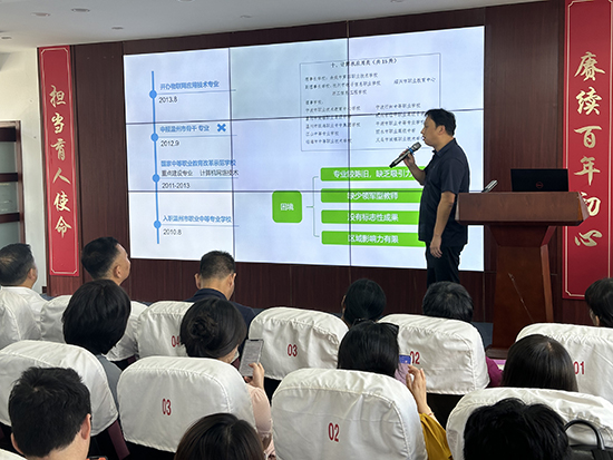 活動(dòng)期間,學(xué)校特邀溫州市職業(yè)中等專業(yè)學(xué)校副校長、浙江省“萬人計(jì)劃”教學(xué)名師、浙江省特級教師、浙江工匠、浙江省春蠶獎(jiǎng)、全國工業(yè)和信息化職業(yè)教育教學(xué)指導(dǎo)委員會(huì)委員、正高級講師、高級技師王恒心帶來主題為“物聯(lián)十年:我與我的團(tuán)隊(duì)”的專題講座。