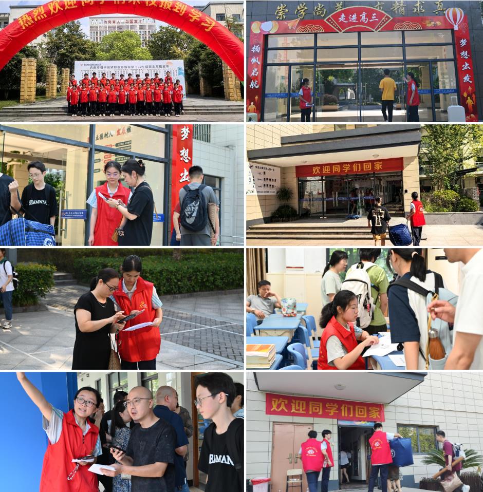 清晨,新生報到工作有條不紊,熱火朝天。高一新生及家長們在志愿者引導下前往各班教室報到,班主任們早早等候在教室,為學生家長們辦理入學手續。報到完成,家長和孩子一同前往領取生活用品,走進溫馨的宿舍。