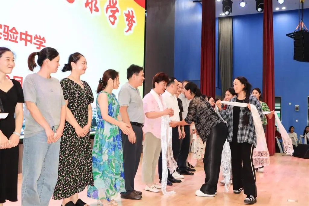 實中附屬幼兒園報告廳內(nèi),浙甘班學(xué)生欣賞了實中學(xué)子帶來的精彩表演,場內(nèi)不時響起熱烈的掌聲。活動中,浙甘班的各任課教師向甘孜學(xué)生遞上“親情卡”,上面寫有教師姓名及電話,方便學(xué)生有問題隨時聯(lián)系。甘孜學(xué)生也向?qū)嵵行nI(lǐng)導(dǎo)及任課教師獻上潔白的哈達,傳遞真誠的心意。