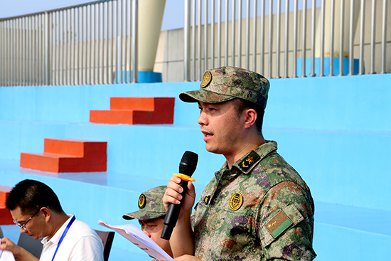 王堅(jiān)龍副部長代表人武部宣讀軍訓(xùn)教官名單,他對同學(xué)們提出三點(diǎn)要求:第一,要求同學(xué)們把自己當(dāng)作一名軍人。第二,要求同學(xué)們在軍訓(xùn)中學(xué)會關(guān)愛他人,關(guān)心集體。第三,希望同學(xué)們在訓(xùn)練后要認(rèn)真總結(jié)。他也代表全體教官在全校師生面前做出承諾會在全體訓(xùn)練中嚴(yán)密組織,精心指導(dǎo),盡職盡責(zé),以飽滿的精神狀態(tài)投入到訓(xùn)練中,出色完成軍訓(xùn)任務(wù)。