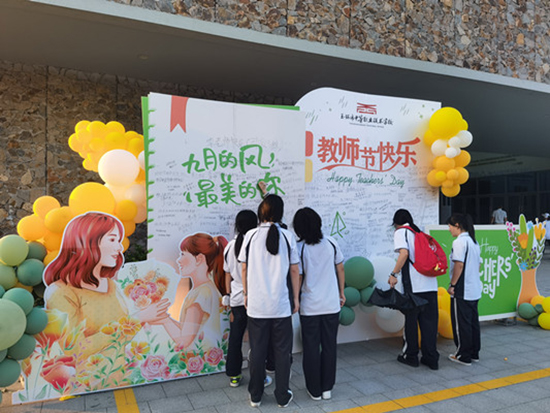 活動(dòng)期間,學(xué)校還在圖信樓前布置了教師節(jié)祝福牌,鼓勵(lì)學(xué)生在上面書(shū)寫(xiě)對(duì)老師的祝福和感謝之詞,希望通過(guò)這樣的方式,展現(xiàn)學(xué)生們對(duì)老師的真摯情感,讓老師們感受到學(xué)生們的關(guān)愛(ài)和尊重。