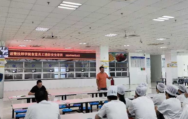“食堂的消防安全一直是食堂安全工作中的重點(diǎn)”“電器著火不能用水來滅火”“滅火器要對(duì)準(zhǔn)著火點(diǎn)根部噴射”……為進(jìn)一步加強(qiáng)校園安全管理,提高食堂工作人員對(duì)突發(fā)火災(zāi)的應(yīng)急處理能力,確保廣大師生的飲食安全與生命財(cái)產(chǎn)安全,日前,諸暨技師學(xué)院開展新學(xué)期食堂消防安全培訓(xùn)及演練。