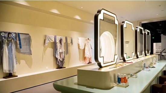 在講解員的帶領下,大家參觀了美妝文化展示館,集中展示了美妝歷史文化發展,集聚國內外多家優秀化妝品企業發展歷程、文化與產品,同時也詳細了解了美妝小鎮的發展歷程。隨后,一行人走進美妝技能演示區。這里是美妝與服飾的集結地,展現了時代的流變和文化的交融,古與今、東與西的美學在這里融合,同學們認真觀摩、驚喜贊嘆,不時用手機拍照記錄。