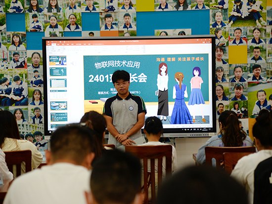 2401班班主任錢燕群介紹了班級自開學以來的建設情況,包括班級文化的營造、學生日常表現及學習進展等,為家校雙方搭建了良好的溝通橋梁。學生代表分享了自己在學校的學習生活感悟。
