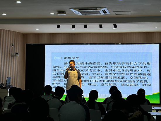 本次課程采用靈活的走班制教學(xué),每周三定期舉行,預(yù)計(jì)整個(gè)學(xué)期將帶來(lái)18至20次精彩紛呈的學(xué)習(xí)體驗(yàn),讓學(xué)生在輕松愉快的氛圍中不斷成長(zhǎng)。首講由朗讀者語(yǔ)言藝術(shù)中心汪李濤老師擔(dān)綱。汪老師從形象感受、聽(tīng)覺(jué)感受、視覺(jué)感受、時(shí)空感受多個(gè)角度入手,用生動(dòng)有趣的例子和深入淺出地講解,讓學(xué)生們感受到了語(yǔ)言的無(wú)窮魅力。