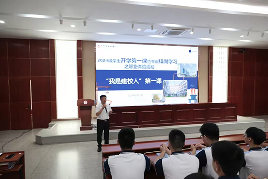 教學管理處主任丁國文針對新同學關注的“學什么”“學到怎么樣”“將來能做什么”以及“怎樣才能順利畢業”等核心問題,做了簡單明了的講解,并告訴新同學作為建筑專門化學校,只有我們學校才具備建“家”的條件。