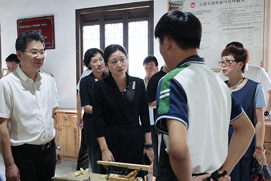 張東和對(duì)學(xué)校傳承與創(chuàng)新并舉的文化遺產(chǎn)保護(hù)理念給予了高度肯定。她指出,學(xué)校要進(jìn)一步深入挖掘文化遺產(chǎn)的內(nèi)涵和價(jià)值,通過(guò)多種形式的教育活動(dòng)和社會(huì)實(shí)踐,增強(qiáng)文化自覺(jué)和文化自信。同時(shí),文化遺產(chǎn)的保護(hù)與傳承離不開(kāi)高素質(zhì)的人才培養(yǎng),希望學(xué)校能夠培養(yǎng)更多具有深厚文化底蘊(yùn)和創(chuàng)新能力的技術(shù)技能人才,讓文化遺產(chǎn)成為連接過(guò)去與未來(lái)的橋梁,實(shí)現(xiàn)傳統(tǒng)文化與現(xiàn)代技藝的完美融合,成為推動(dòng)文明進(jìn)步的重要力量。