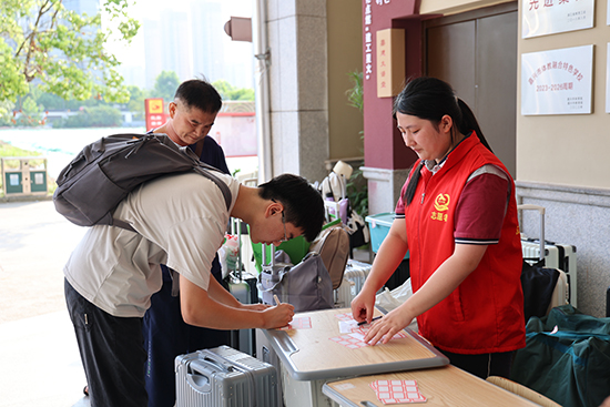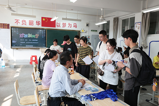 教室里貼心溫暖的歡迎板書,寢室床鋪上整齊擺放的生活用品,無不透露出班主任與教職工們的辛勤與關懷。一遍遍耐心指引,一趟趟手提肩扛,從報到注冊到交通指引,從行李搬運到校園導覽,每一環節都力求盡善盡美。師生志愿者們雖額頭冒汗,嗓音漸顯疲憊,卻只是輕輕一抹汗水,匆匆潤喉,隨即以更加燦爛的笑容再次投入到緊張而有序的服務工作中。這些忙碌而充滿活力的身影,構成了校園中一道亮麗的風景線。
