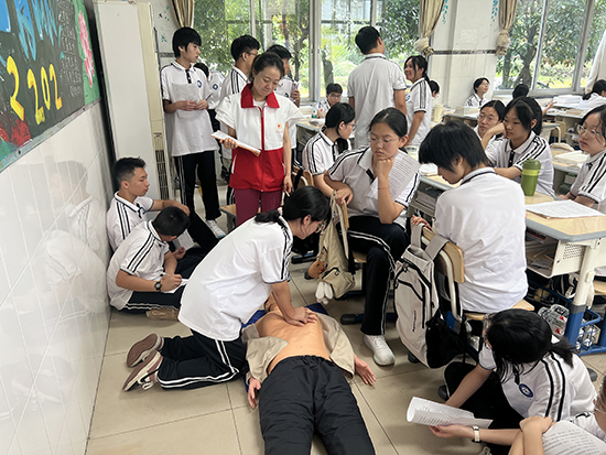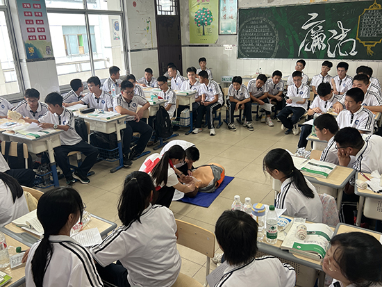 本次培訓分為理論和實操兩個部分。學校特邀了江山市紅十字會應急救護師擔任講師,通過生動有趣的PPT展示、互動問答、模擬演練等多種形式,深入淺出地講解了心肺復蘇術(CPR)、自動體外除顫器(AED)的使用技巧、止血包扎、傷員搬運等緊急救護知識與技能。同學們圍坐一圈,聚精會神地聆聽著每一個細節,從識別心臟驟停的“黃金四分鐘”,到正確實施心肺復蘇的步驟,再到AED的規范操作流程,每一個環節都力求精準無誤。