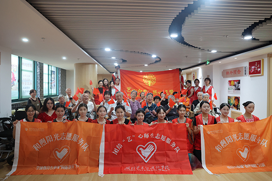 浙江省湖州藝術(shù)與設(shè)計(jì)學(xué)校學(xué)前教育專業(yè)部“向陽(yáng)花開(kāi)”志愿服務(wù)分隊(duì)為老人們表演了紅歌串燒、民樂(lè)演奏、舞蹈表演、朗誦等精彩紛呈的文藝節(jié)目,用青春活力給福利院帶來(lái)一片歡聲、笑語(yǔ)與掌聲。
