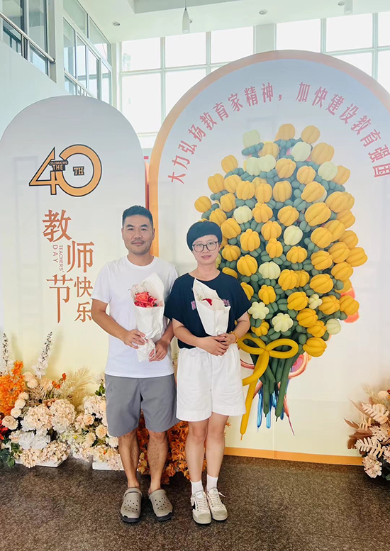 校領導為教師們分發教師節禮物:一束代表詩意的鮮花和一份代表生活的禮品,寄托了學校對全體教職員工“既能腳踏實地,又能心懷詩意”的期望。“教師節快樂!”一聲簡單卻溫馨的祝福,溫暖了大家的心。張校長和老師們親切交流并合影留念,場面熱鬧歡馨。