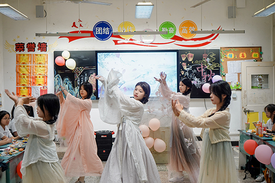每個班級還精心組織了投壺、搶板凳、猜謎語等妙趣橫生的互動游戲。老師們也熱情融入到任課班級當中,與同學們一起享受美食、欣賞節目、感受歡樂。校園里歌聲、笑聲、掌聲此起彼伏。