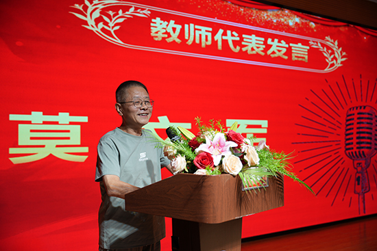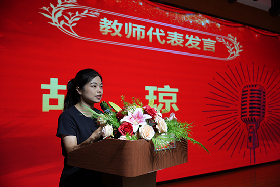 胡瓊老師上臺分享了她的教學感悟,鼓勵新教師們要敢于試錯,常有自省;要擁抱更新,想象未來,厚積薄發;要全身心感受藝術,感受生活,追尋精彩,同時表達了自己將繼續一邊思考一邊改進。