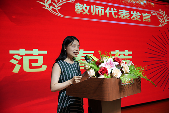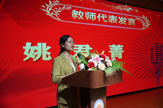 姚君菁老師代表發言,她回顧了自己的從教經歷,表示在新學期依然帶著新憧憬、新希望去工作,堅持“教好書、育好人”是一直的追求目標,表達了愿繼續為臨平學院未來的發展添磚加瓦。