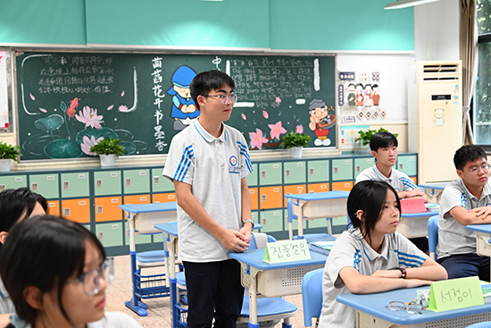 隨后,韓國國民大學代表團走進中韓班,與中韓班學生進行面對面交流,為同學們簡單介紹了韓國國民大學,讓學生們更好地了解韓方學校專業背景及項目辦學特色,同學們踴躍提問,對未來的留學生活充滿了好奇與期待。
