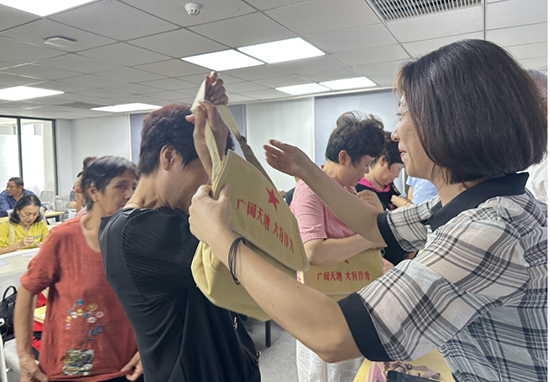 昆鵬社區(qū)學(xué)校為學(xué)員準(zhǔn)備了校徽、書包、筆記本等,并于開班儀式上舉行了授予儀式。開班儀式上,在場領(lǐng)導(dǎo)親自為學(xué)員們佩戴校徽,背書包,喜笑顏開,仿佛回到了少時(shí),樂得合不攏嘴。