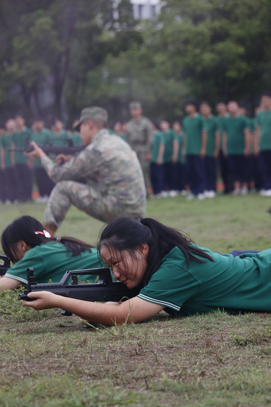 同學(xué)們隊(duì)列整齊,精神飽滿,在教官的指揮下,認(rèn)真地進(jìn)行著軍事技能的訓(xùn)練。口號聲、腳步聲此起彼伏,青春的氣息在空中彌漫;模擬槍、迫擊炮沖鋒陷陣,愛國情懷在心中激蕩。