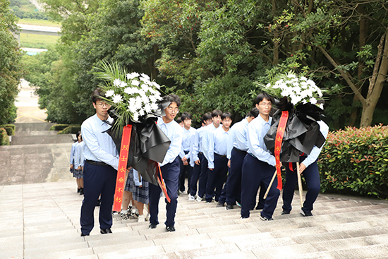 學生代表向革命烈士敬獻花籃,校長張武劍同志、副校長馮朋員同志上前整理挽聯,全體師生向烈士行三鞠躬禮,依次上前獻上鮮花,寄托對革命烈士的崇高敬意和深切懷念。