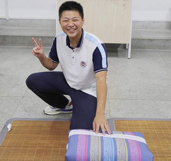 經(jīng)過他們的巧手,那一方小小的被子褶皺盡除,疊得整整齊齊。內(nèi)務(wù)整理工作取得顯著成果。