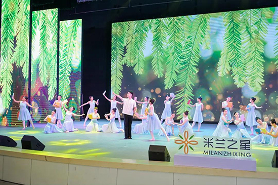 “老師窗前有一盆米蘭,小小的黃花藏在綠葉間……”,浙江省湖州藝術與設計學校學生舞蹈隊表演的開場舞《我愛米蘭》拉開了湖州市教職工才藝大賽暨首屆“米蘭之星”評選活動決賽的帷幕。