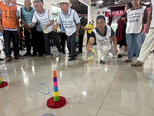 全鎮(zhèn)共有87位老人參加運動會。比賽現(xiàn)場,夾彈珠、套圈、珠行萬里、乒乓球、保齡球和籃球等多個趣味項目輪番上演,吸引眾多老年人的熱情參與。夾彈珠項目中,老年人手持筷子,聚精會神地夾取水中的彈珠,每夾起一顆都伴隨著一陣歡呼。套圈區(qū),老年人瞄準目標,輕輕一投,套中獎品的喜悅溢于言表。珠行萬里則考驗著老年人的團隊協(xié)作和反應能力,他們齊心協(xié)力,讓彈珠在軌道上順利傳接。