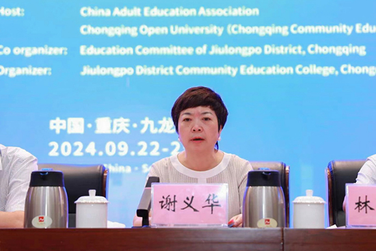 謝義華在致辭中分享了重慶開放大學(xué)推動(dòng)全民終身學(xué)習(xí)的經(jīng)驗(yàn)和做法,表示要立足重慶發(fā)展的需求,主動(dòng)作為、改革創(chuàng)新,聚焦關(guān)鍵和重點(diǎn)群體,加快建設(shè)“人人皆學(xué)、處處能學(xué)、時(shí)時(shí)可學(xué)”的學(xué)習(xí)型城市,竭力為學(xué)習(xí)型大國、教育強(qiáng)國建設(shè)貢獻(xiàn)更多重慶力量。