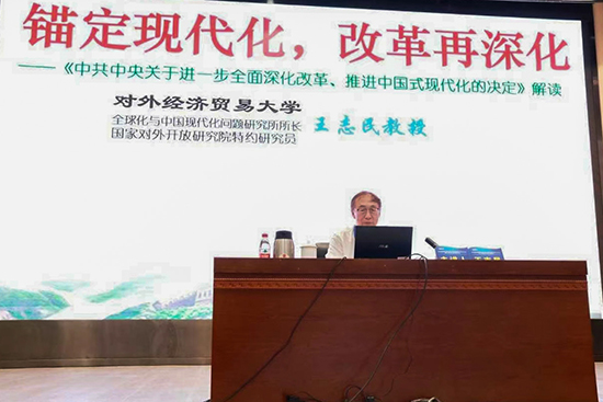 在專家報(bào)告環(huán)節(jié),對外經(jīng)濟(jì)貿(mào)易大學(xué)國家對外開放研究院研究員、全球化與中國現(xiàn)代化問題研究所王志民教授作了題為“錨定現(xiàn)代化,改革再深化——中共中央關(guān)于進(jìn)一步全面深化改革,推進(jìn)中國式現(xiàn)代化的決定解讀”的主旨報(bào)告。全國老齡委專家委員會(huì)委員、上海老年教育協(xié)會(huì)會(huì)長莊儉作了題為“以積極老齡觀引領(lǐng)老年教育高質(zhì)量發(fā)展”的主旨報(bào)告。